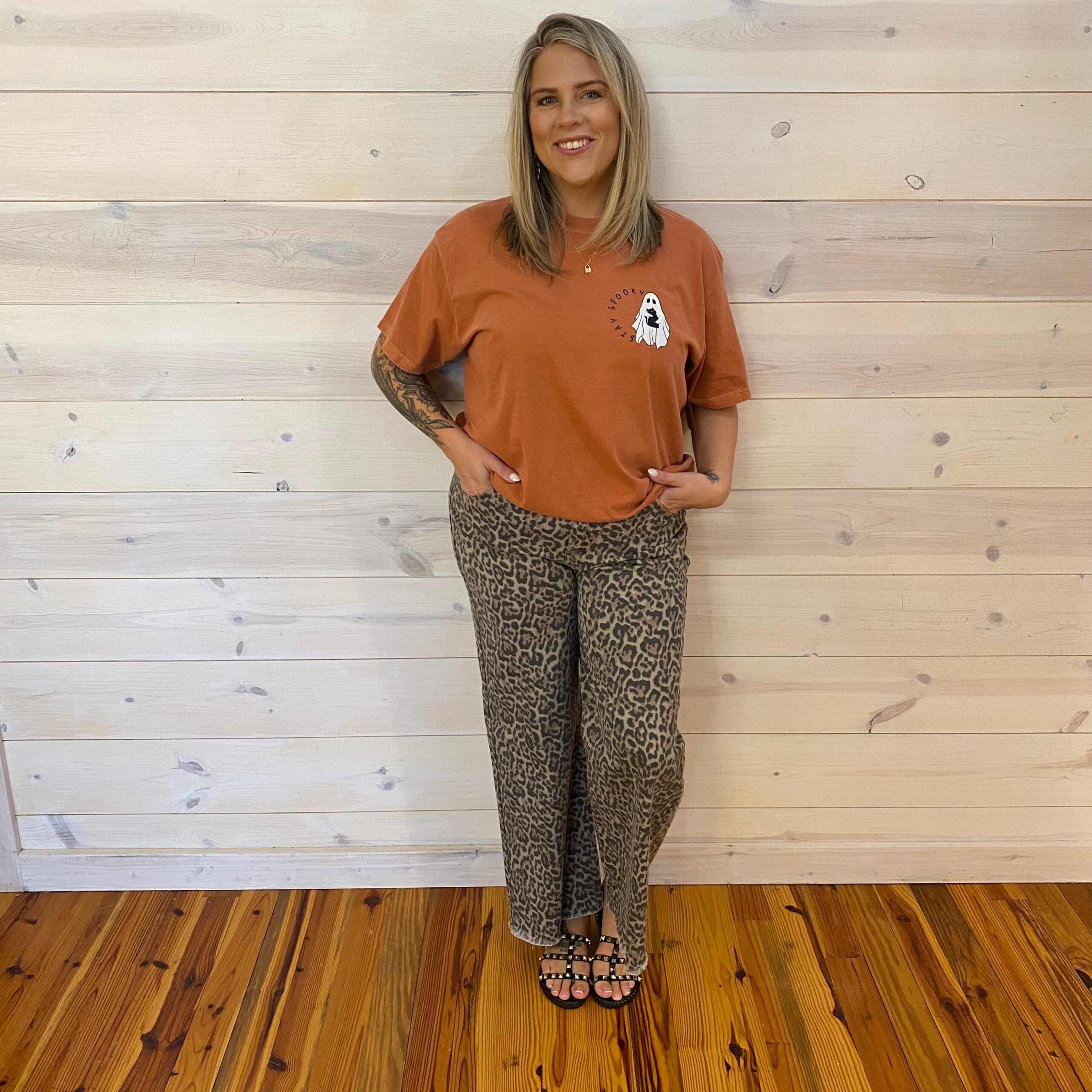 Stay Spooky Ghost Black Cat 100% Cotton Graphic Tee