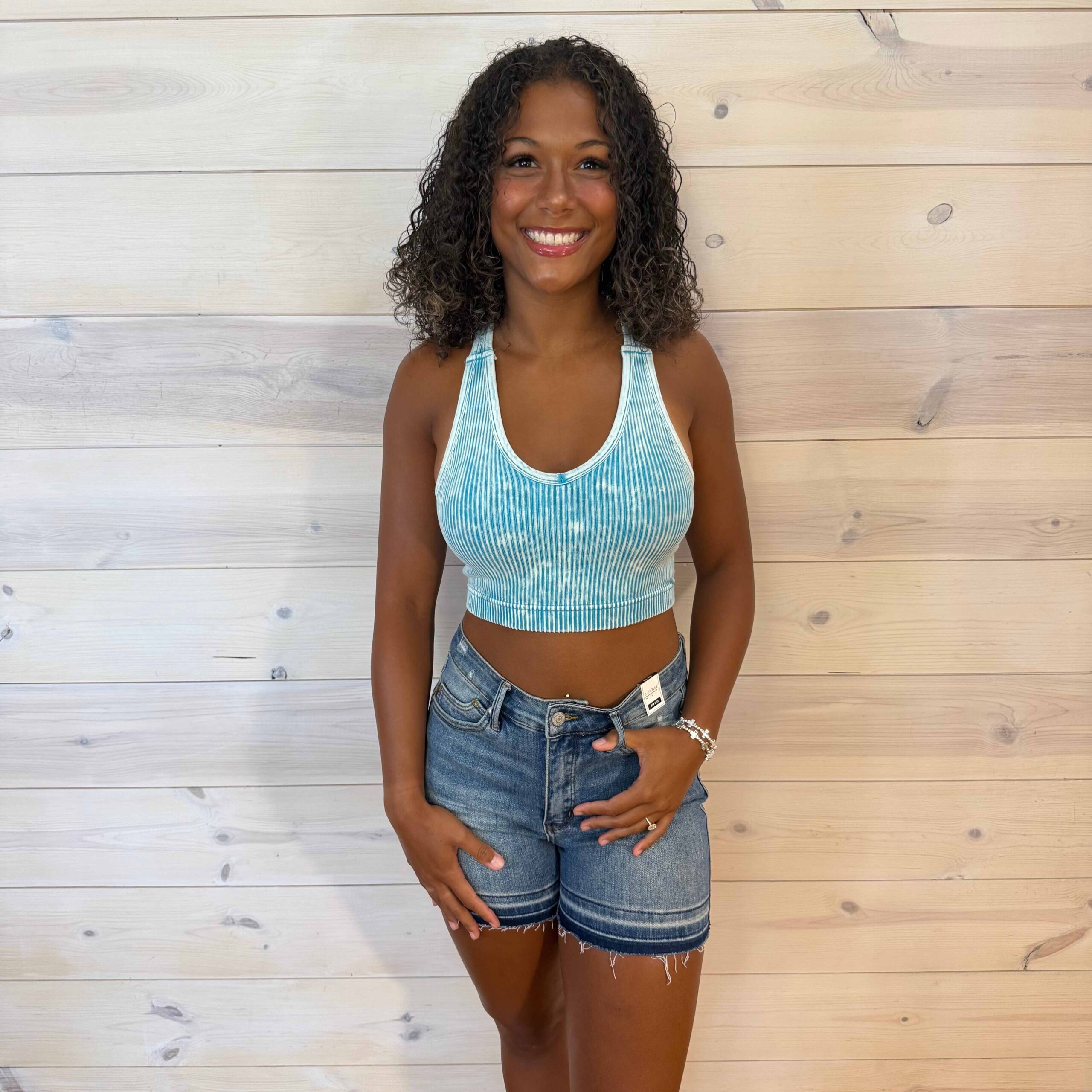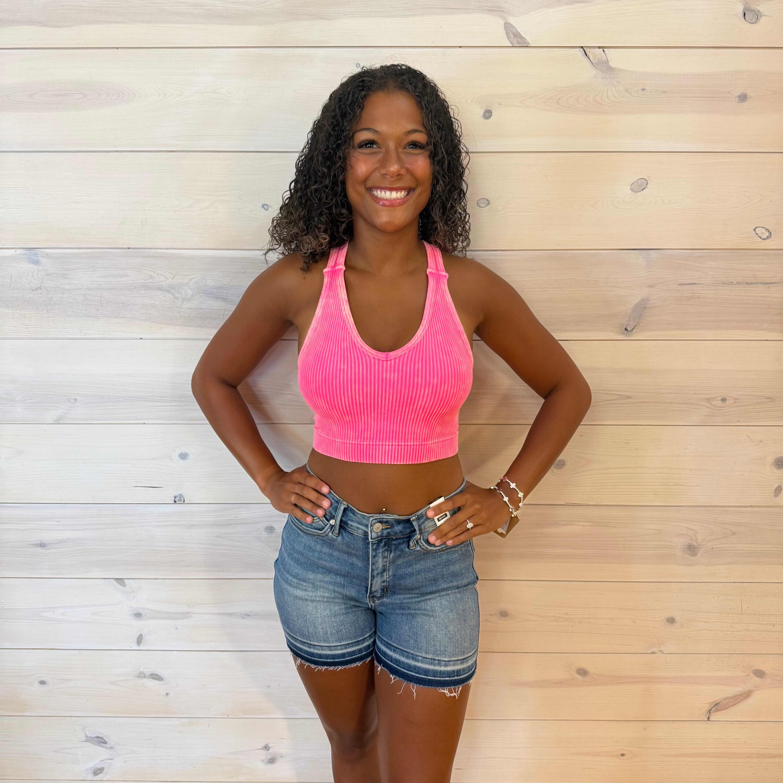 Stone Washed Ribbed Racerback Tank Top with Removable Bra Pads