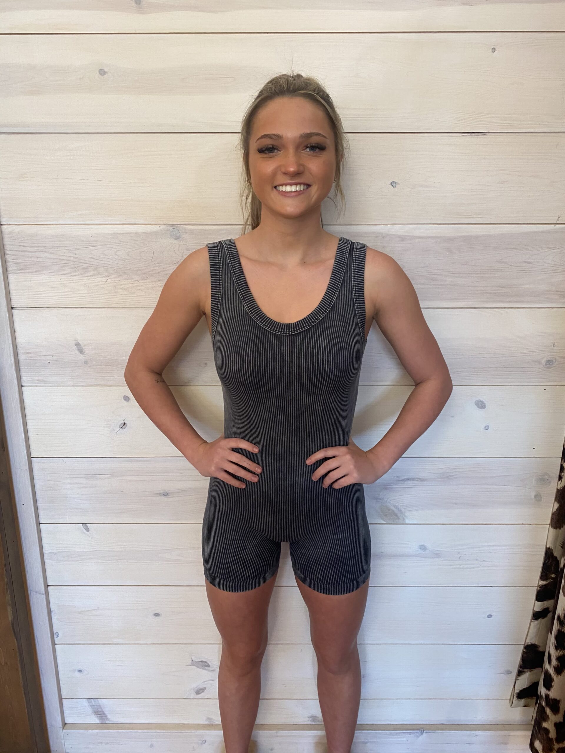 Stone Washed Ribbed Seamless Sports Romper