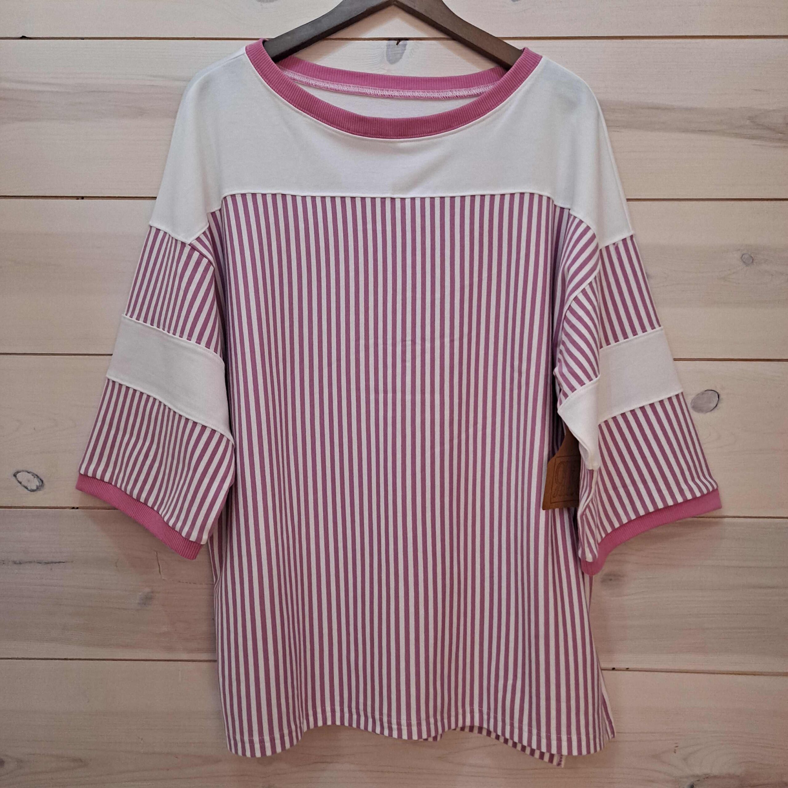 Stripe Patchwork 3/4 Sleeve Top quantity