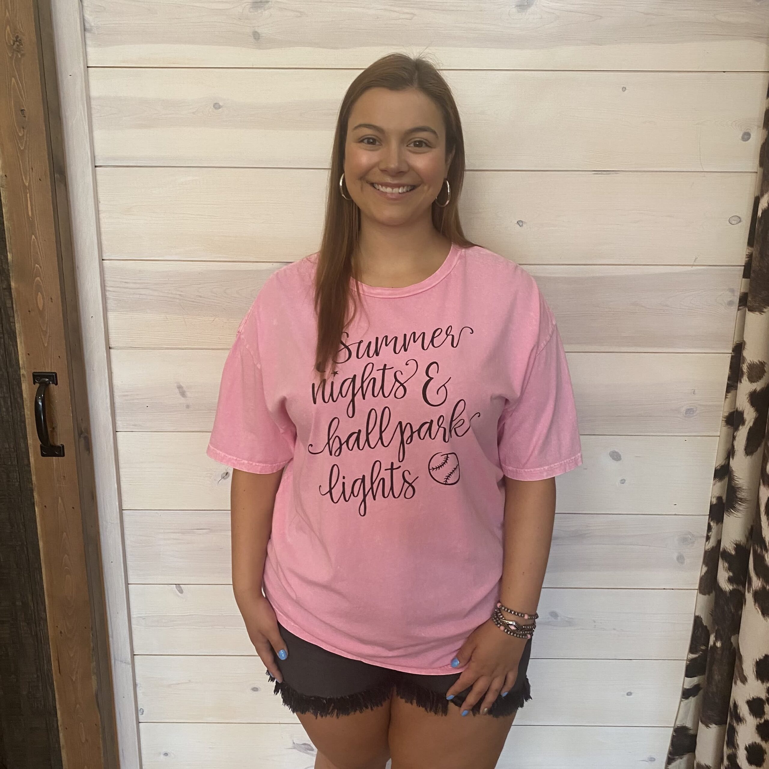 Summer Nights/Ballpark Lights 100% Premium Cotton Mineral Washed Graphic Tee