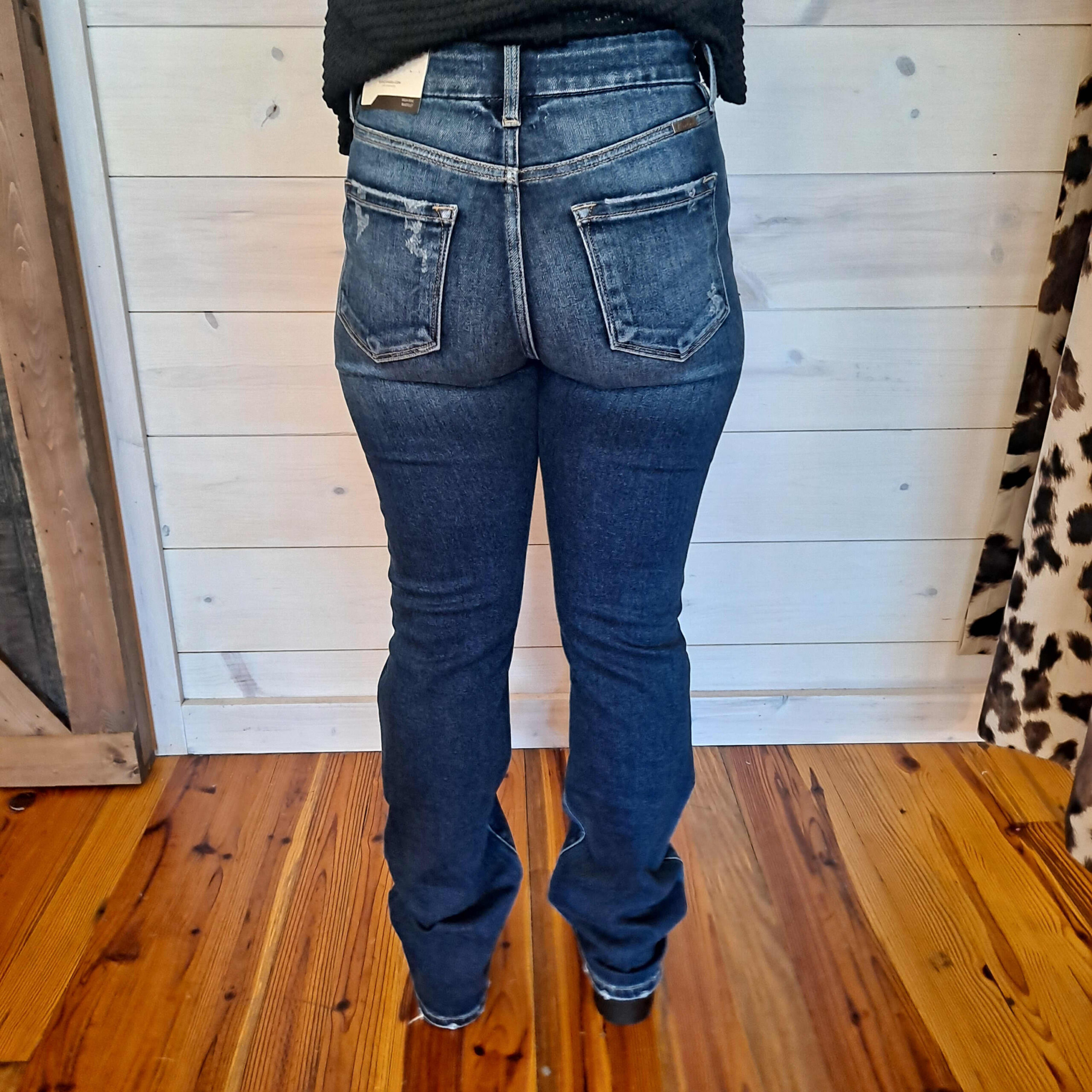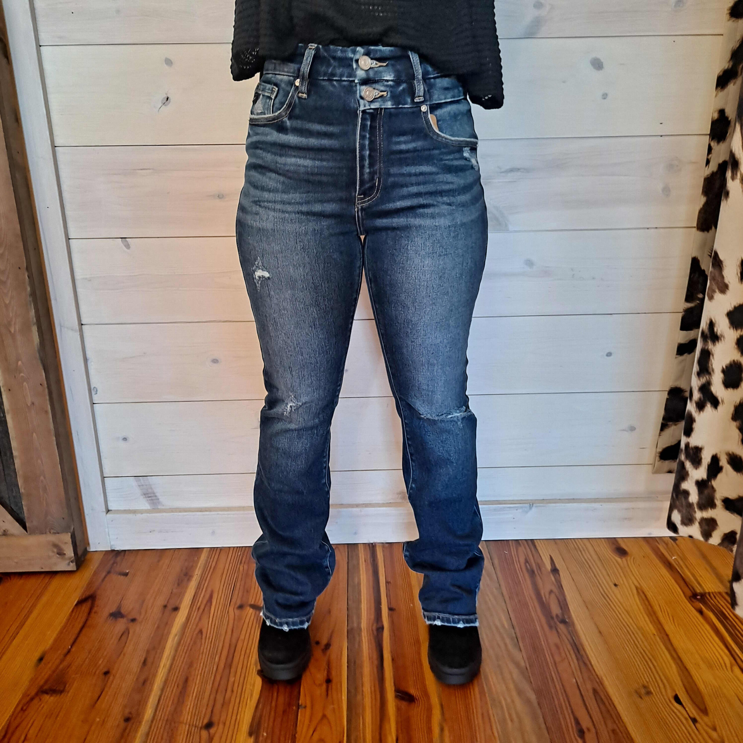 Tabatha-Light Distressed Double Button High Rise Bootcut