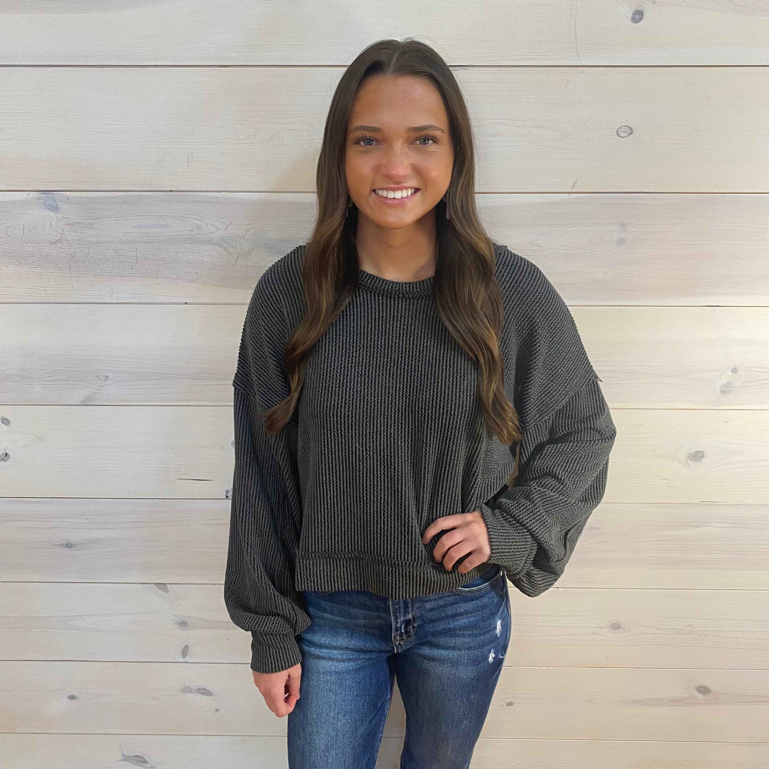 Two Tone Otto Ribbed Oversized Comfy Knit Top