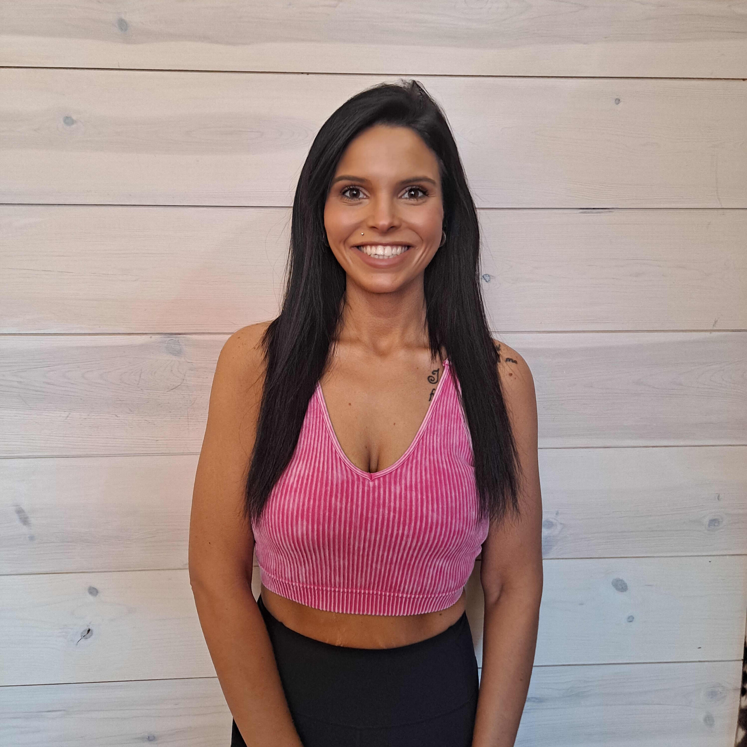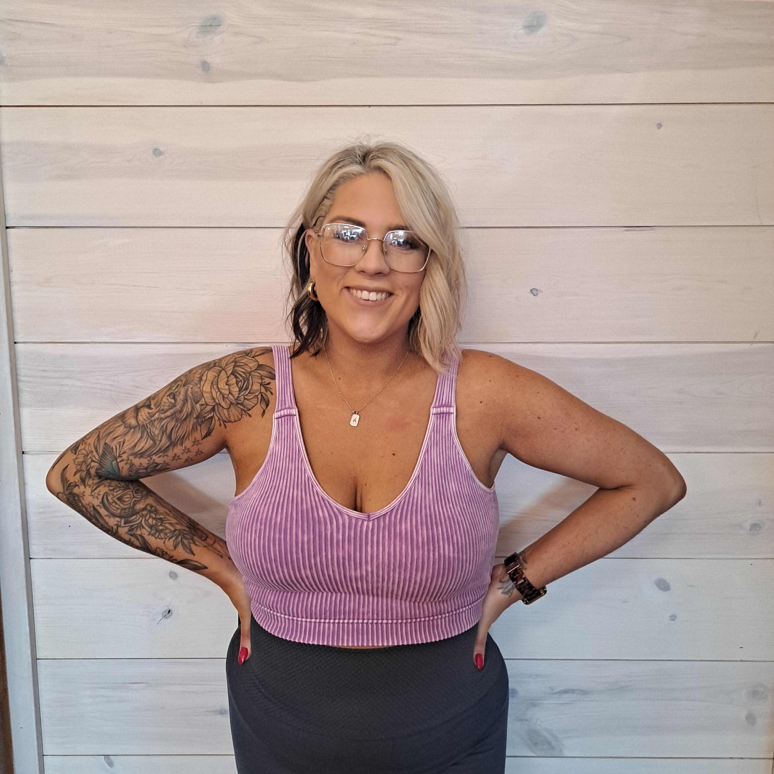 Washed Ribbed Cropped Bra Padded V-neck Tank Top