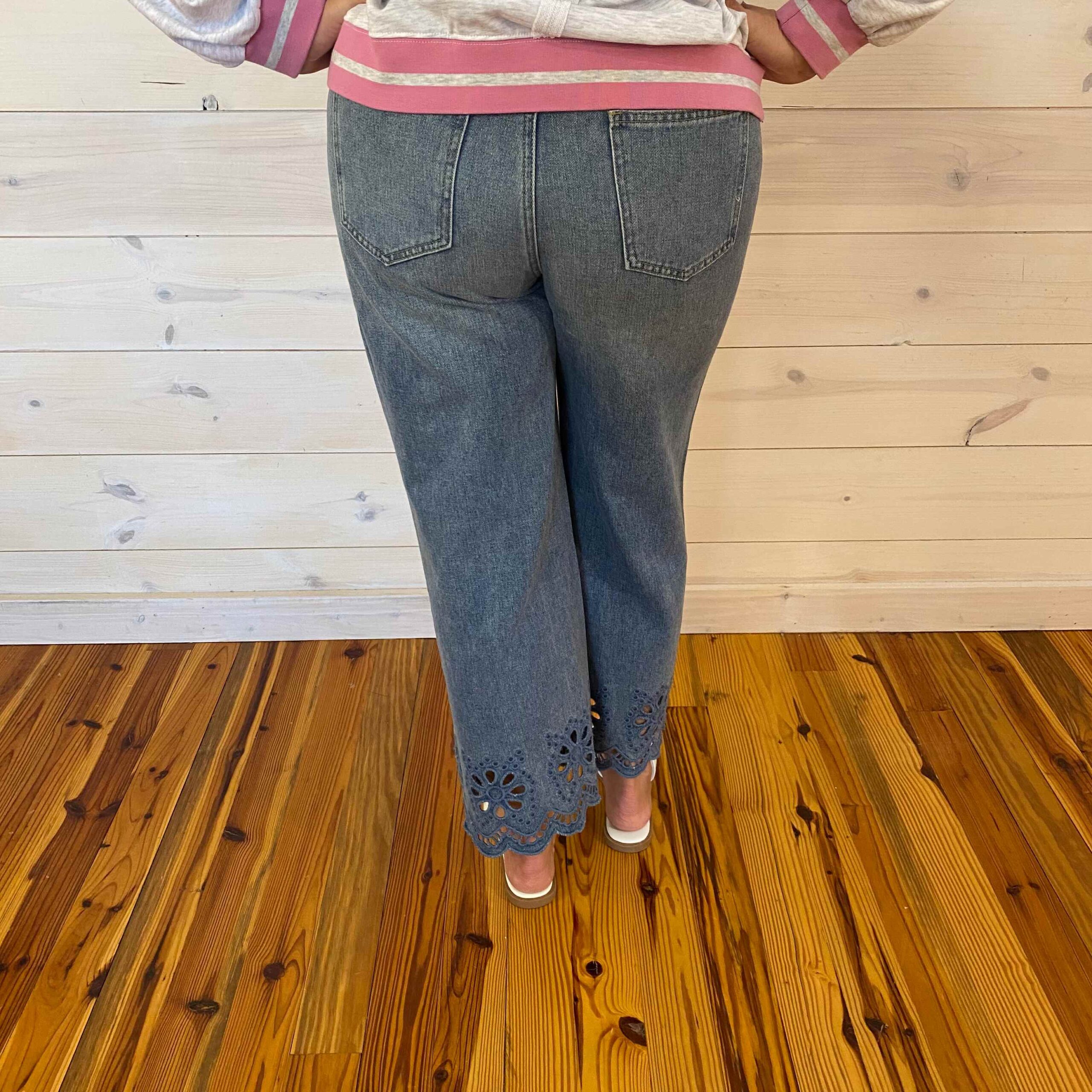 Zelma-Embroidered Cropped Wide Leg High Waist Jeans