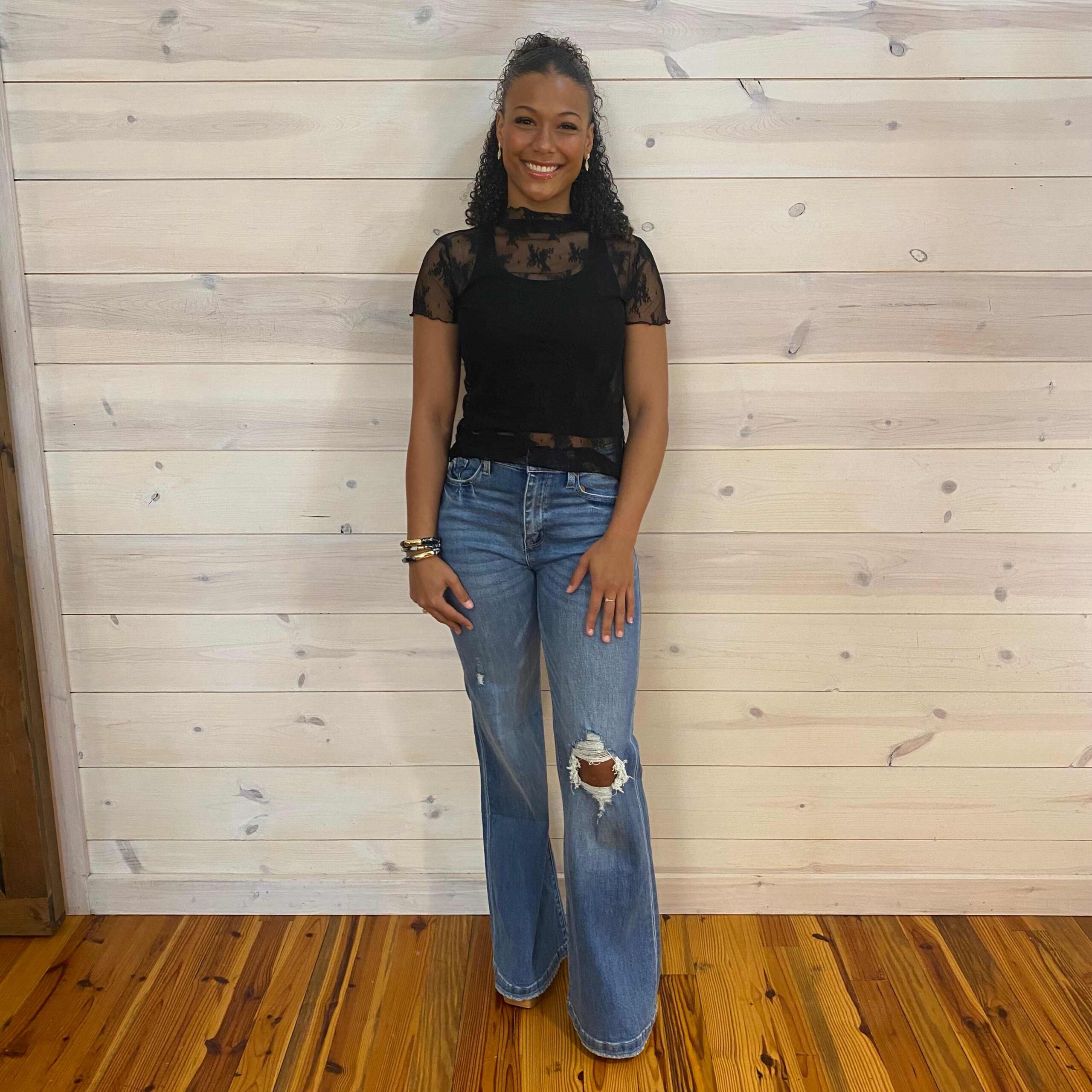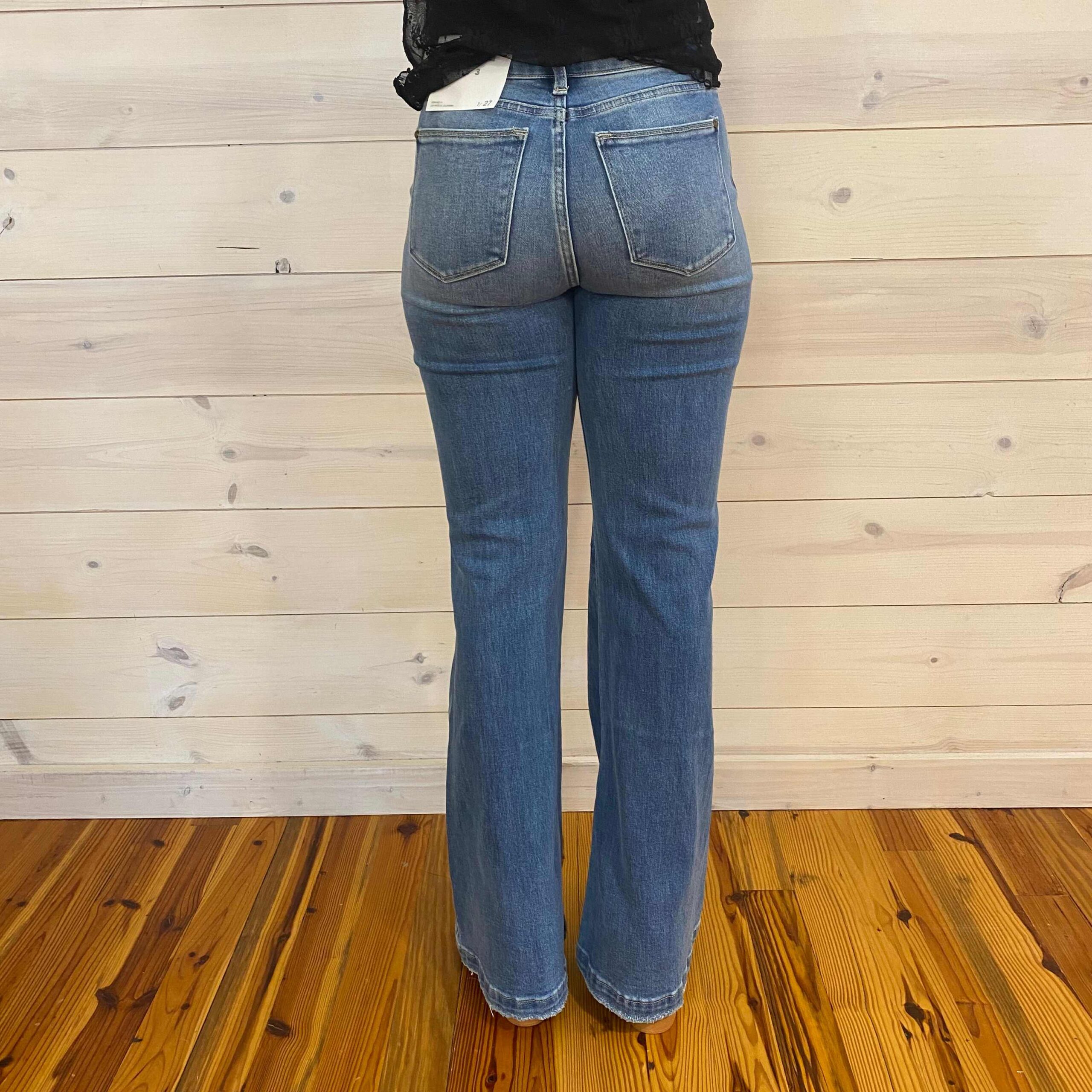 Zoe-Distressed Super High Rise 70’s Inspired Flare