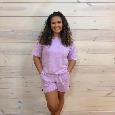 Acid Washed Short Sleeve Tee & Shorts Set with Pockets